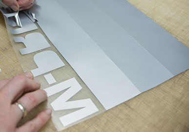 Bei diesem Veredelungsverfahren wird zwischen Flex- und Flockfolien unterschieden. Bei beiden Materialien werden grafische Motive oder Schriftzüge per Schneideplotter in die Oberfläche "geritzt" und überschüssige Bereiche händisch entfernt. Die so entstandenen Vorlagen werden nun auf das Textil per Transferpresse übertragen. Das Ergebnis ist "messerscharf" und sehr edel. Hierzu stehen eine Vielzahl an unterschiedlichen Materialfarben zur Verfügung. Darüber hinaus können Spezialflexfolien, wie retroreflektierende, fluoreszierende, strukturierte, nachleuchtende oder hochglänzende Folien, zum Einsatz kommen. Diese Methode eignet sich für kleine bis mittlerer Auflagen.
